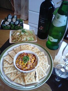 クラッカーに素敵ディップ類、素敵パスタ、