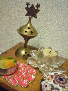 手前の花びらキャンドルはタイのお土産。